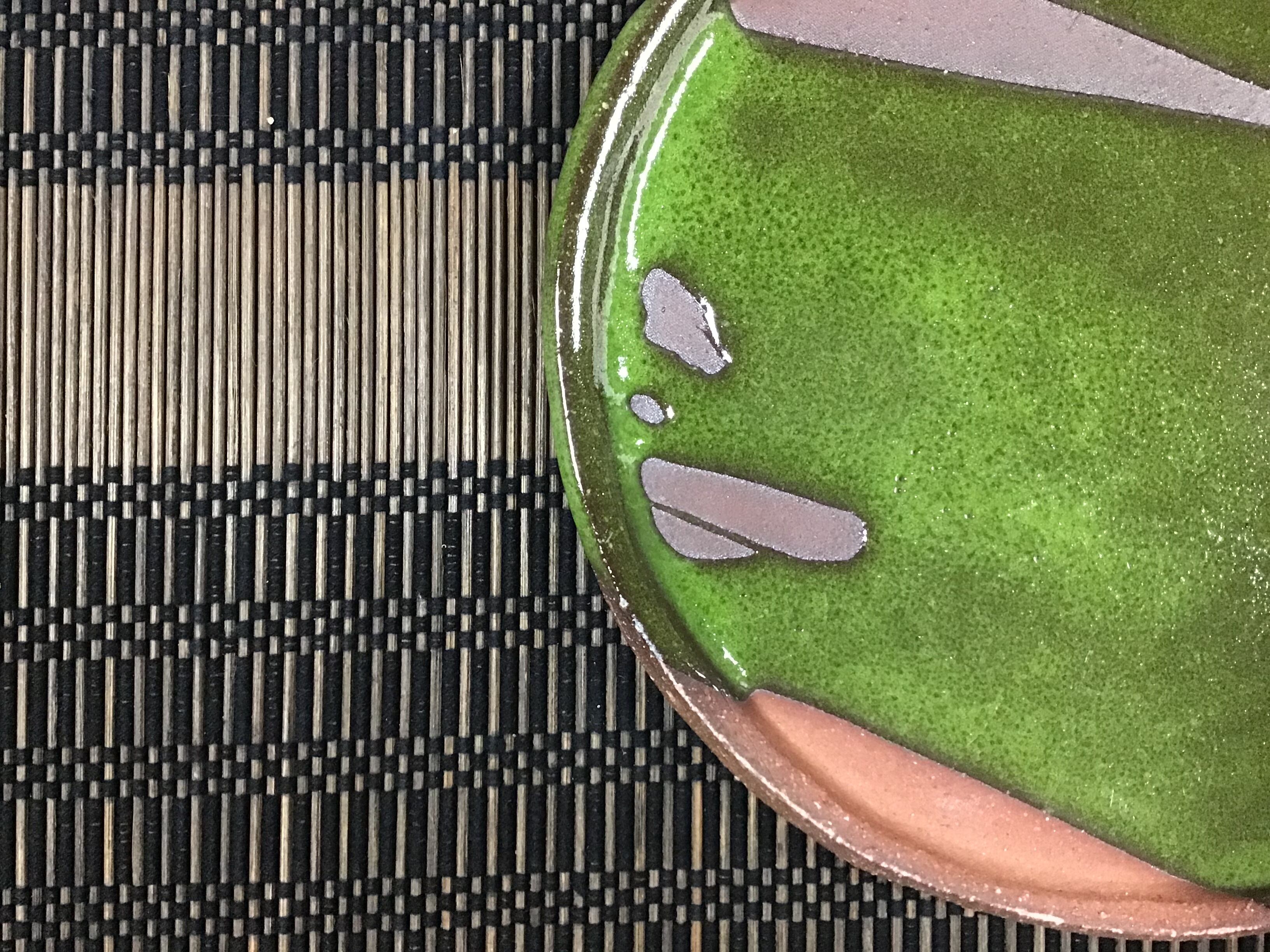 釉薬はラジウム含有鉱石でつくり、上掛けして焼き上げてあります。