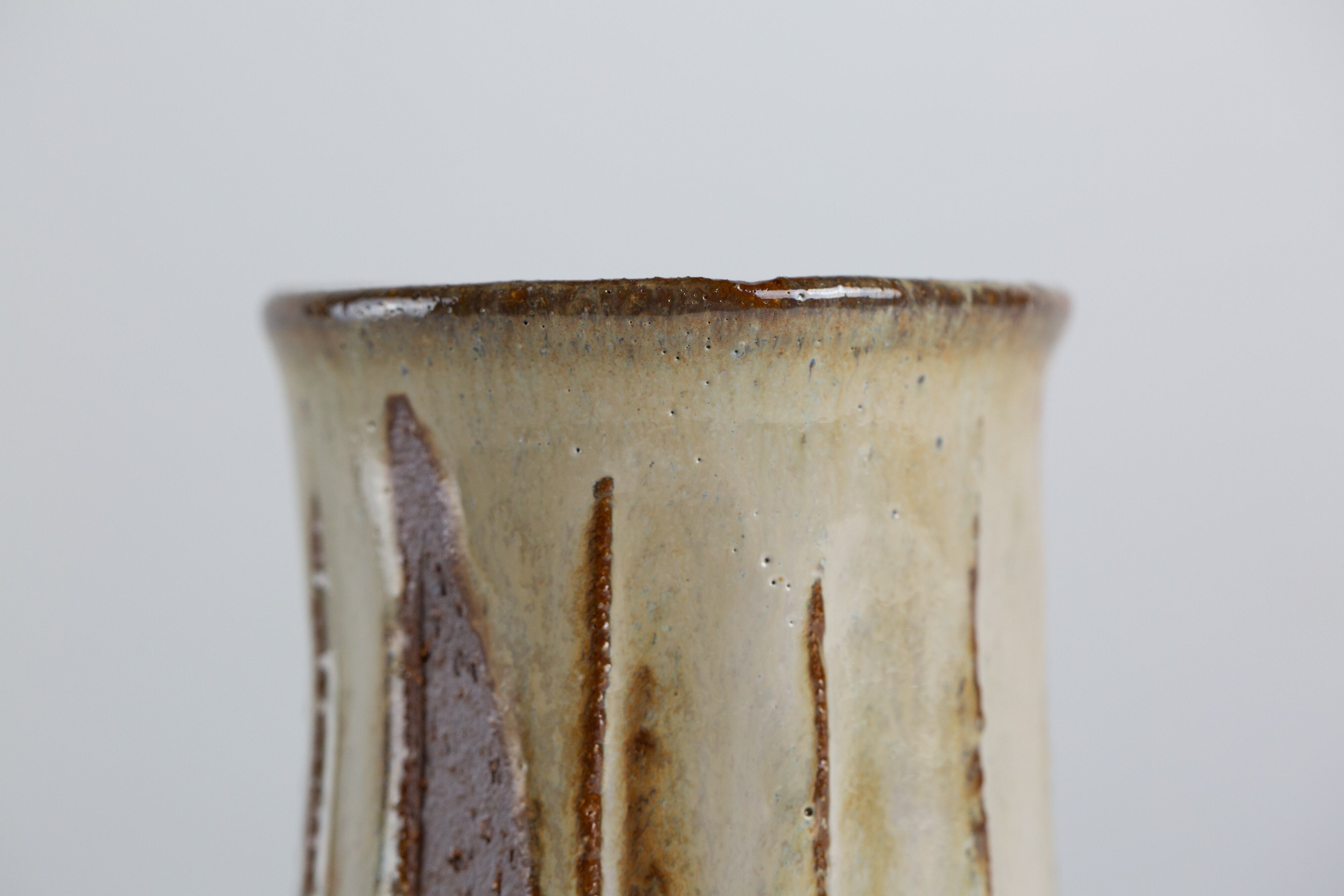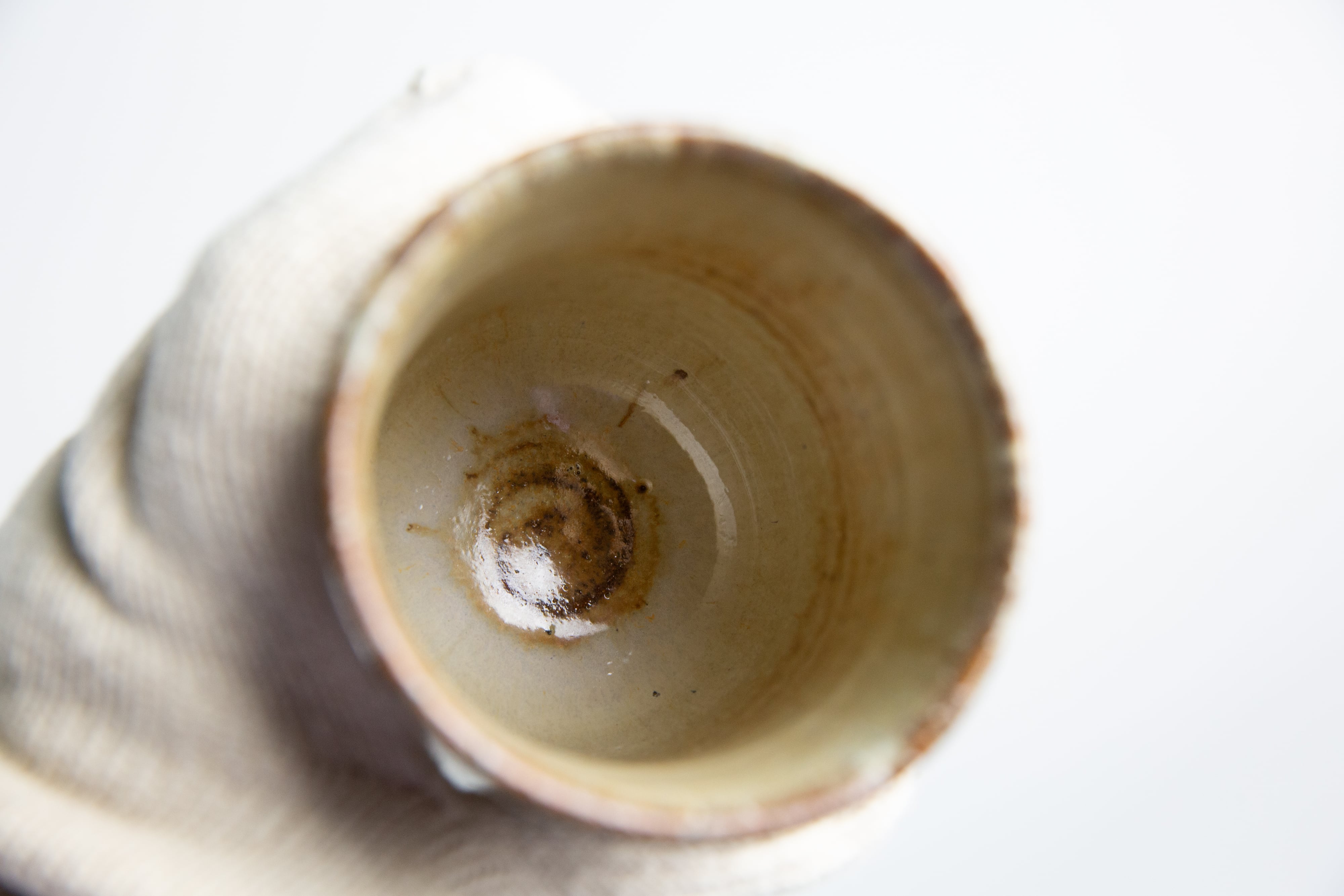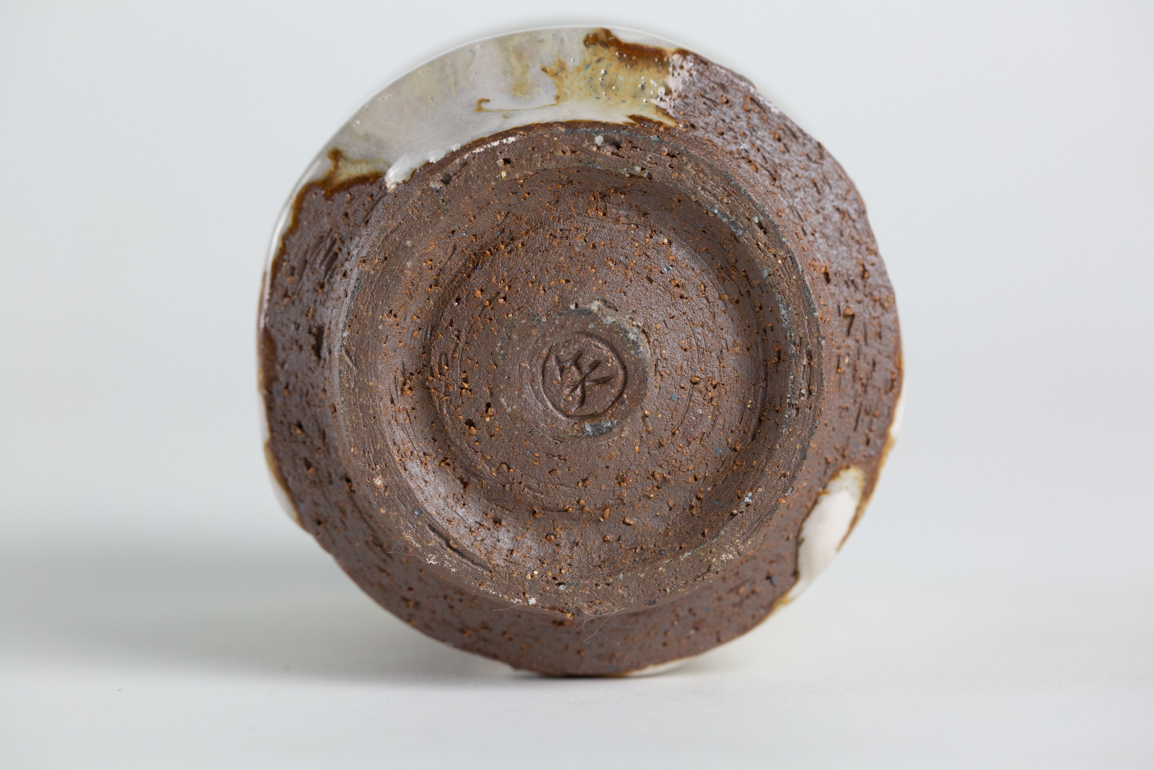 ワラ灰を調合した光沢のある白濁釉です。赤土との相性が良いです。